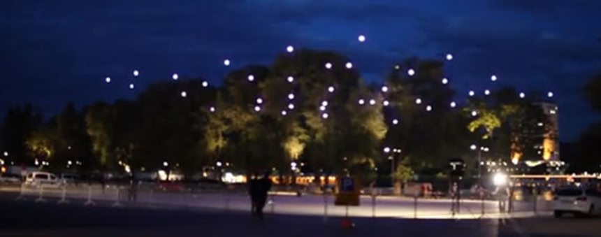 コンピューターで動きを制御し、まるでUFO連隊のように夜空を彩っているのだ。