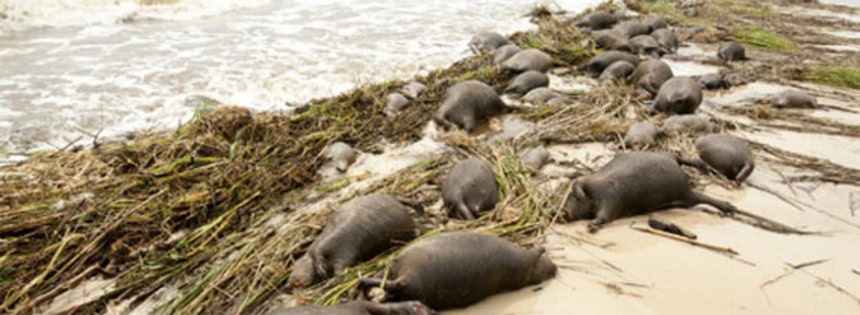 この画像を大きなサイズで見る先月28日午後、ルイジアナ州南東部に上陸したハリケーン「アイザック」は、各地に豪雨をもたらし、広範囲に渡り50万世帯が停電となった。ところがこれだけでは終わらなかった。ミシシッピ州の海岸に1万匹を超える巨大ネズミのようなヌートリアの死骸が流され、立ち込める悪臭が問題になっている。