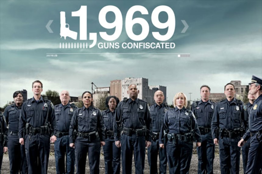 ステータスのページでは、ミルウォーキーの警察官が整列し、画面上には銃の没収数や犯罪率の低下などを見ることができる。