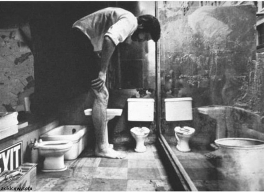 この画像を大きなサイズで見るイメージの中から新たなるイメージが展開されるという、ドロステ効果を使った再帰的な画像なのかな?モノクロでバスルームという構図が変な不気味さをかもしだしているよね。