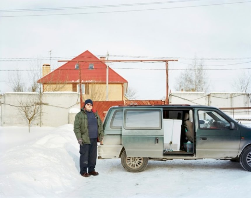 この画像を大きなサイズで見る凍結保存の準備のため、スロベニアから愛犬と到着したRoman Lyubimov。Kriorus研究所にて。ロシア、モスクワ近郊、Alabushevo。2010年