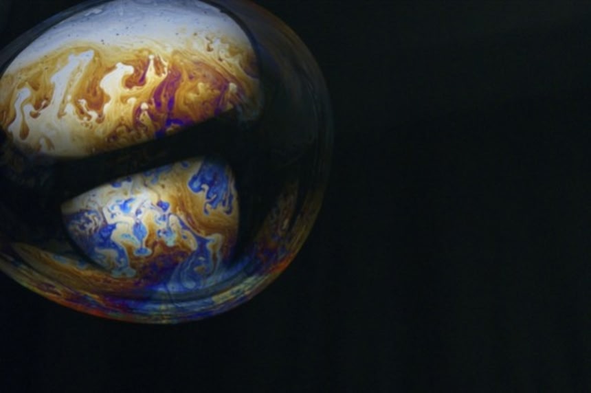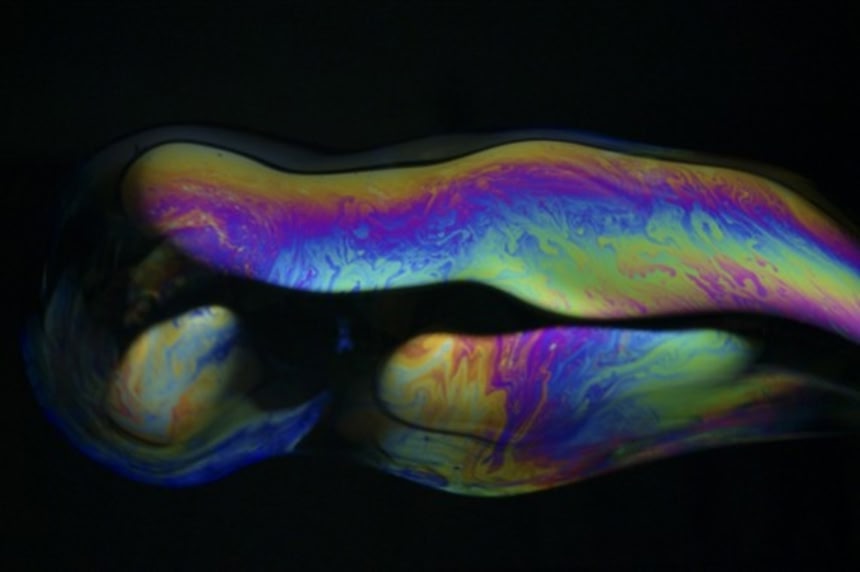 シャボン玉の表面は、シャボン液が薄く伸びて膜を作るわけだが、よく見るとその膜には美しい模様がある。その模様を接写してとらえた画像が公開されていたのだが、どこかの惑星みたいで、降り立ってみたくなるんだ。