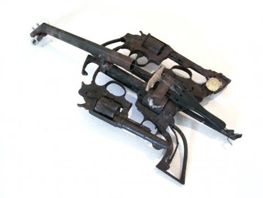 不自然に切り込まれた銃があるが、警察の押収品を発射機構を壊して破棄したものとかを使ってるのかな?