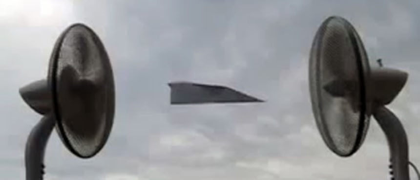 大きさ140インチ(355?)の巨大紙飛行機。ラジコンで飛ぶのだそうで、このフライトが初飛行だったそうだ。なかなかうまく飛ばせたみたい。