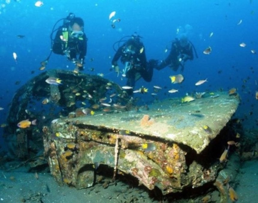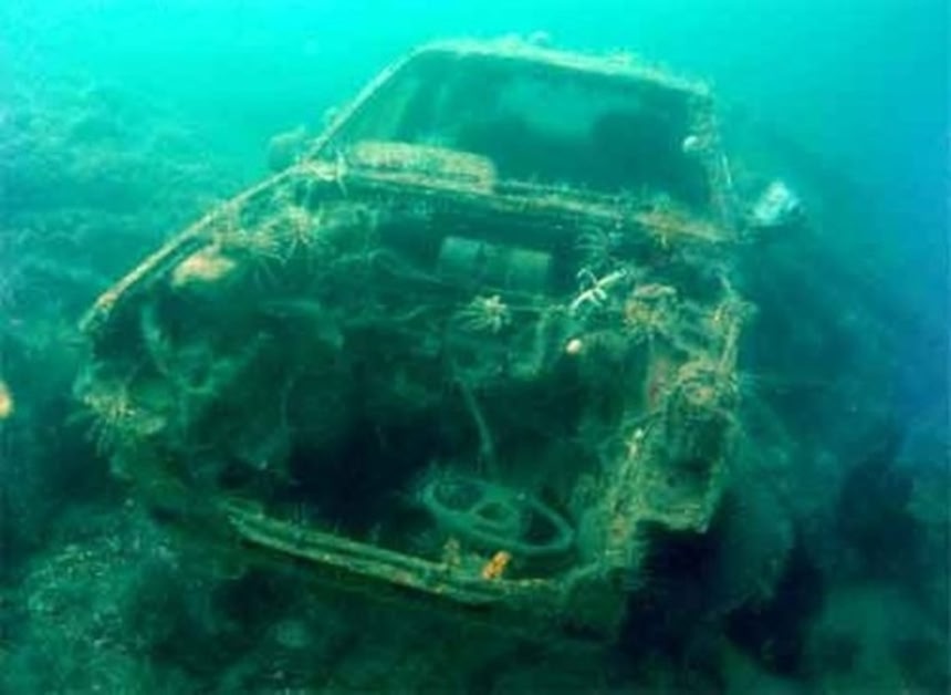 ギリシャには廃車を沈めて人工魚礁にしているダイビングスポットがあるという。