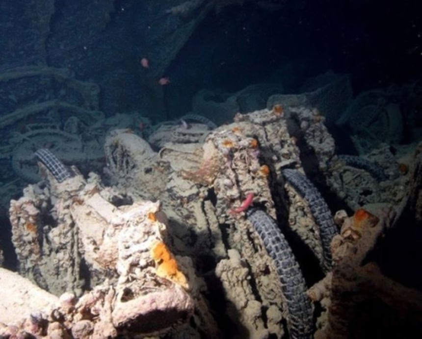 バイクはおんなじのばっかり捨ててもったいない…と思ったら撃沈された輸送船なのね。一回も走らず沈められたなんてさらにもったいない…。