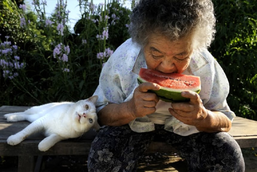 この画像を大きなサイズで見る日本のおばあちゃんとオッドアイな白い猫のほのぼのとした日常をとらえた写真が海外サイトで話題となっていた。これらの写真は、フォトグラファーの伊原美代子さんが、12年前におばあちゃんのみさおさんの生きた証を残したいという思いから撮影をはじめたもので、8年前にひょっこりと家の納屋に現れたという白い猫が、その後のおばあちゃんの人生における、唯一無二の大切で一番の相棒となっていく様子が鮮明に写し出されている。