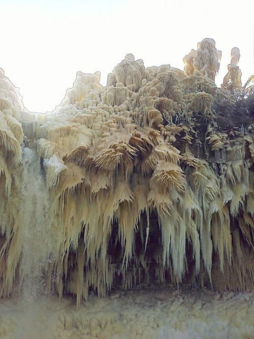 滝の水しぶきが作り上げた氷の世界は、観光客にも人気で、毎年冬になると多くの観光客が押し寄せるという。つるんと滑るので転倒注意だ。