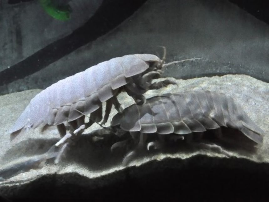 この画像を大きなサイズで見る同館のダイオウグソクムシは、これまで5個体が入館。現在、最初に入館した「No.1」と5番目に入館した「No.5」の2個体(共にメキシコ湾で捕獲)が飼育展示され、入館者からは「デッカいダンゴムシ~」などと声を掛けられながら、同館人気者のラッコやジュゴンの影でひっそりと「極地の海」の水槽の中で息を続けている。