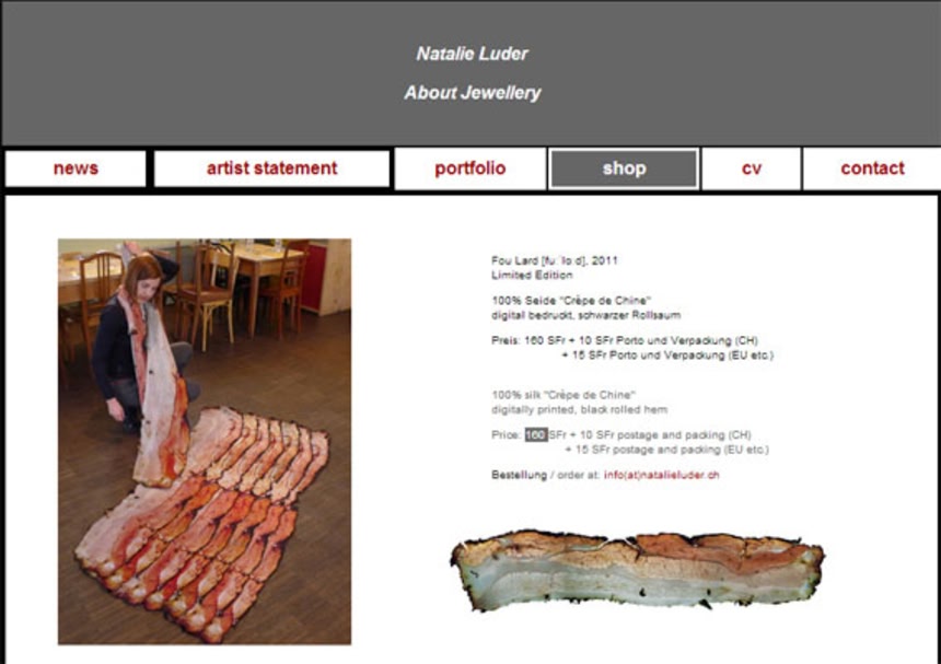 ベーコン好きなら泣いて喜びそうなスカーフが、スイス人デザイナー、ナタリー・ルーダーにより考案、発売となった。100%シルクなので肌触りも良い。そして何よりおいしそう。私を食べてと言わんばかりに首に巻きつけて街を歩けば、ベーコンイーターな人との眩しい出会いがありそうな気もしなくもなくもない。