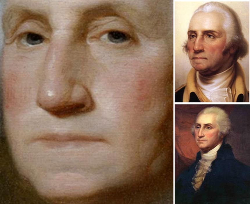 ジョージ・ワシントンのこの未完成の肖像画は、すべてのアメリカドル札に印刷されている。だが、その口元をじっくりとながめてみたことはあるだろうか?やけに大きすぎるように見えないだろうか? まるで冬に備えてナッツをほおばるリスのようではないか。ご存知の方も多いと思うが、ワシントンは歯がなくて、入れ歯をはめていた。しかし、他の有名な肖像画ではそれほど口が膨らんでいるようには見えない。