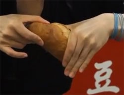 粘土状のパン生地が、手の中でおいしそうなフランスパンに大変身してしまうという驚異のマジック。マジックというからには当然タネがあるわけなんだけど、いったいどんなトリックを使っているのだろう?とにかくびっくりたまげた。んでもってフランスパン食べたくなった。