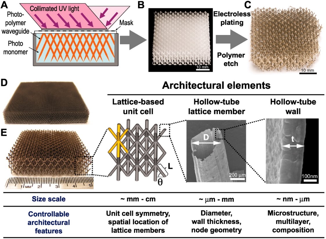 【動画サイトの都合により現在動画は見られません】 また、規則正しく格子状に編み上げられたこの金属は加えられた力を吸収する特徴を持ちあわせており強度も高い。格子ポリマーにはニッケル-リンの層を堆積させており、超軽量だけでなく頑強な構造となっている。これまで最も軽い固体とされているシリカ・エアロゲルの重さが1立方センチメートルあたり約1.0ミリグラムだから、それより0.1ミリグラム軽いことになる。