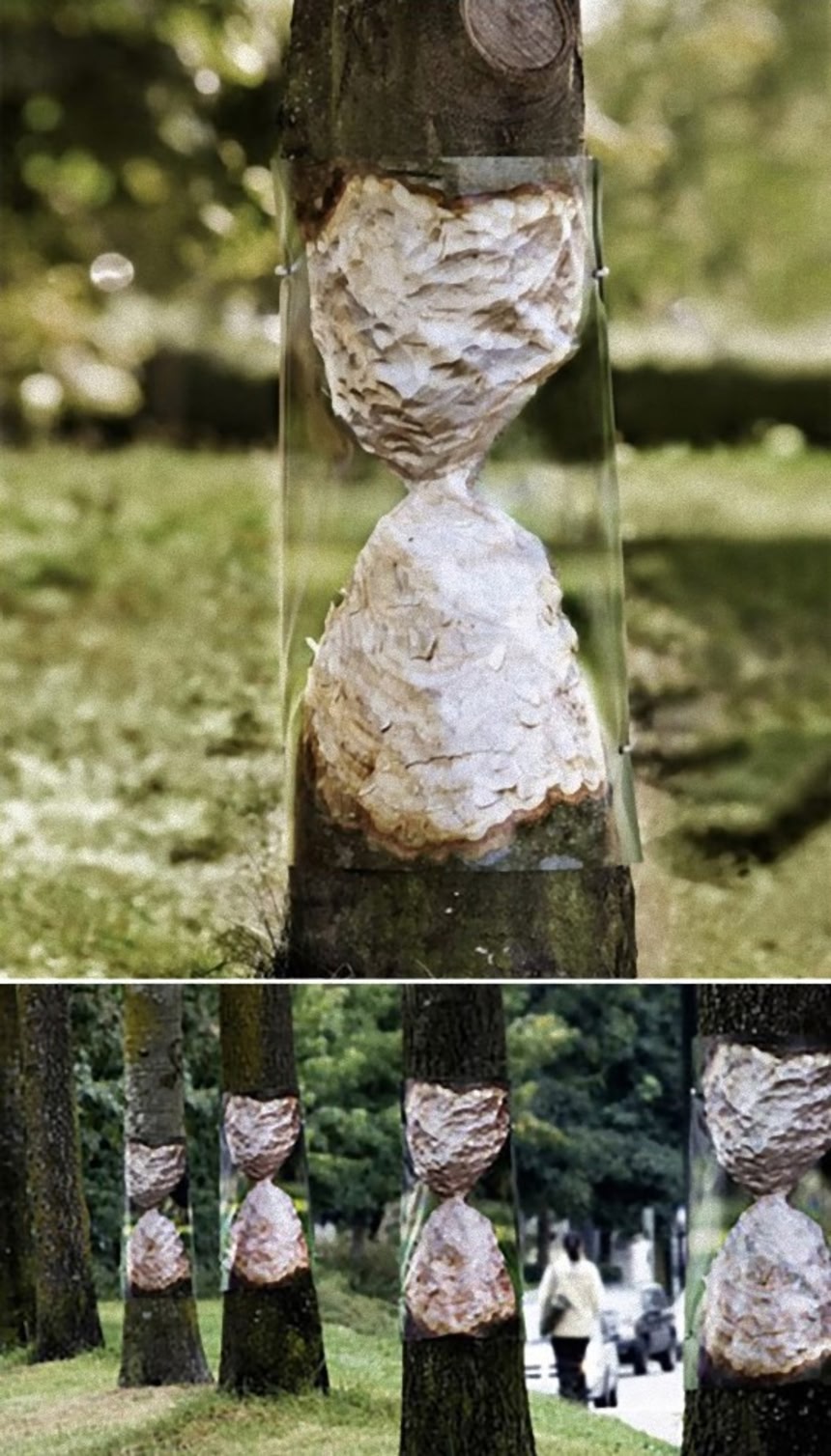 ビーバーのかじった木の保護してるような写真は何なんだろう。
