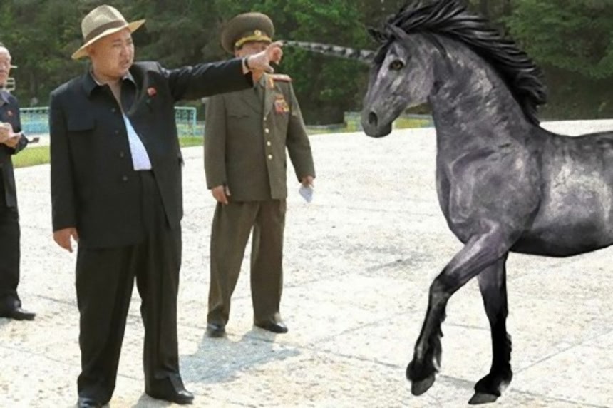 CGのユニコーンにまたがっている将軍様の画像→フェイスに注目