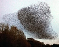 高速道路を走行中の車の目の前から、まるでこちらに向かってくるかのようにムクドリの大群が後から後からやってくる。それにうっかり気を取られたら事故を引き起こしそうな緊張の一瞬なのだが、一度でいいからこんな体験をしてみたいと不謹慎にも思ってしまうわけなんだ。