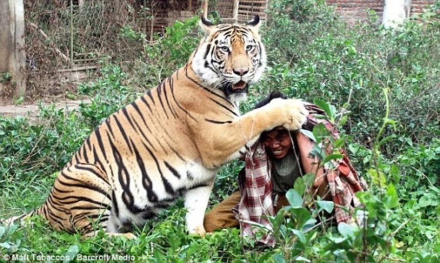 首にじゃれられたら死んでしまうわけか;トラの側がじゃれたつもりでもな