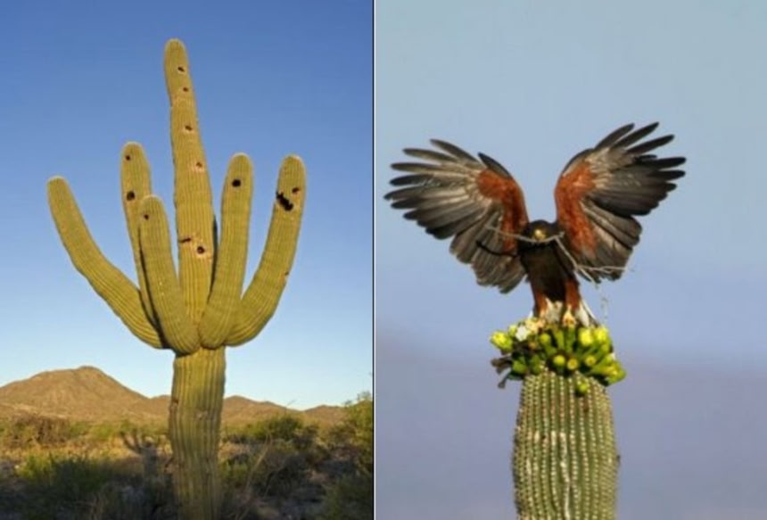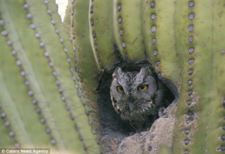 この画像を大きなサイズで見る棘だらけのサボテンは、何者も寄せ付けない的な屈強の防御システムを搭載しているかのように見えるが、意外にも多くの鳥たちの快適な住処となっているという。