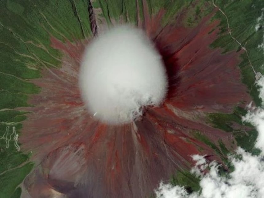富士山も空から見ると「鉱物」の塊なんだなって実感する写真だな。