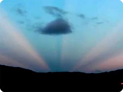 終末予言目前となったこの日、この怪しい光を遭遇した南米の信仰深い人は「おお、神よ・・・」となったそうだが、実際にはこれは反薄明光線によるものと思われる。