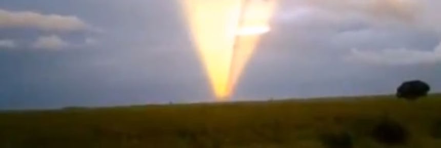 今月17日、ブラジル、パラナのパロチナの町に現れたと言う巨大な光の柱。景気の良かった時代の日本の郊外のパチンコ屋さんみたいに膨大な光量で空に扇状の光を放っている。