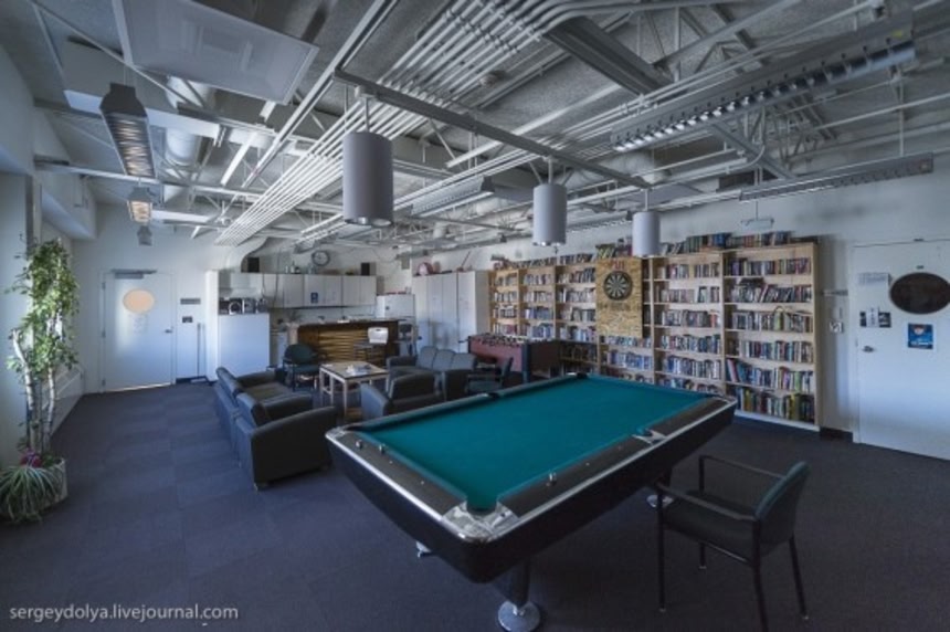 この画像を大きなサイズで見る建物は今まで分離していた機能がひとつにまとまり、室内は適温に保たれ、完全に自足でき、食堂・ランドリー・売店なども備わっており、それらのためにジェット燃料使用の発電機3台を使用している。