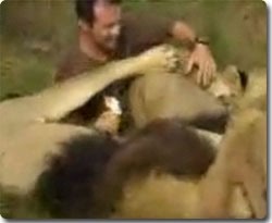 体を地面にうつ伏せにし、ジャガーの成獣にマッサージを受けているのは、他でもない人間の飼育員のおにいさん。メキシコにある野生生物保護センター内でのほのぼの?としたワンシーンである。