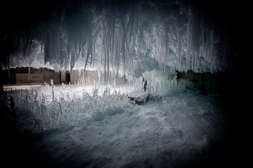 これらの写真は、建物解凍チームがぶ厚い氷霜をプロパンヒーターでじんわりと溶かしていく作業を開始する前に、写真家ゲイリー・ジェンセンが撮影したものである。これが建物の内部なんて信じられないくらいのダンジョンさ加減だ。