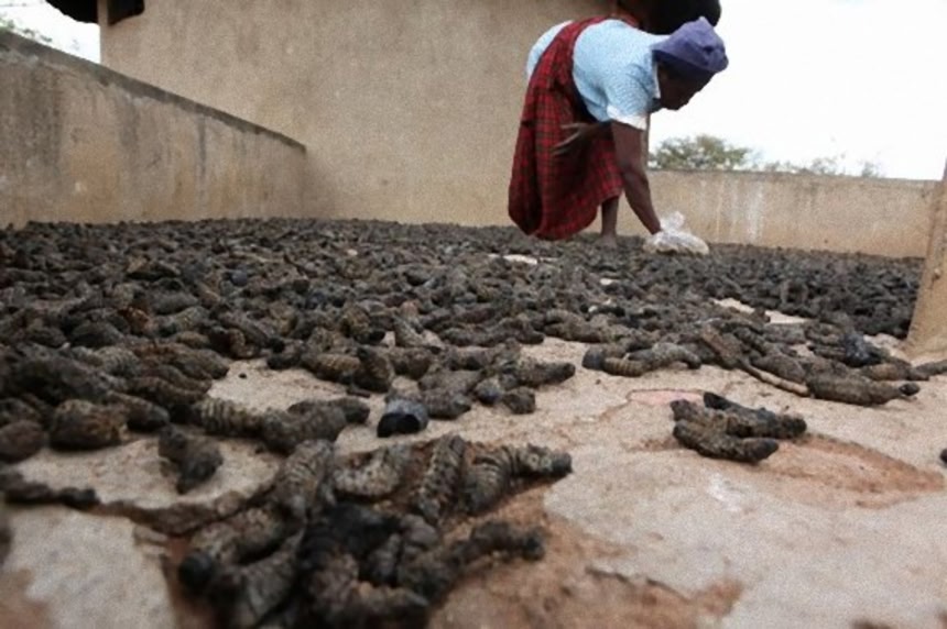 モパネ・ワームは南部アフリカに分布するヤママユガ科のガの幼虫だ。これらの写真は、ジンバブエで撮影されたモパネワームが食卓にあがるまでを記録したもの。