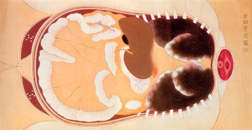 この画像を大きなサイズで見る9.山脇東洋の息子、山脇東門の「玉砕臓図」(1774年)