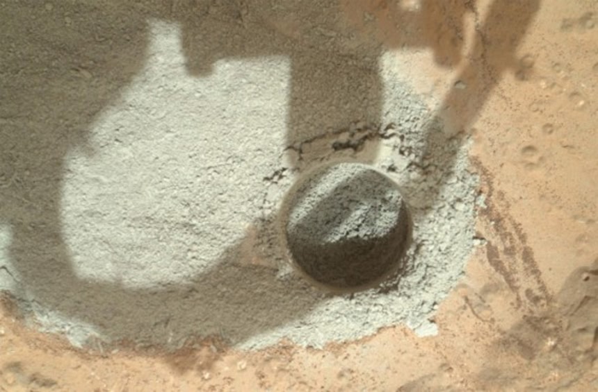 キュリオシティがドリルで掘った直径1.6センチ、深さ6.4センチの穴