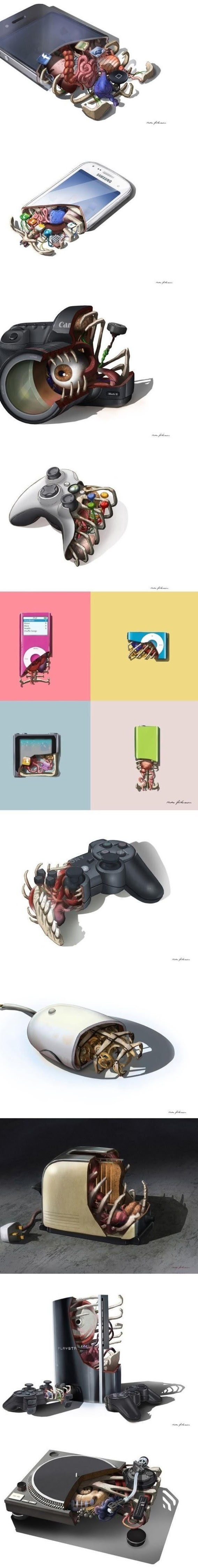 どんなものでもとりあえず解剖図を作っておきたいと言う風潮はあったりなかったりするみたいで、今回はスマホ、ゲーム機、カメラなど、家電製品の解剖図が公開されていた。やっぱり基本内臓は入ってるわけだよね。インテルだけじゃなく。
