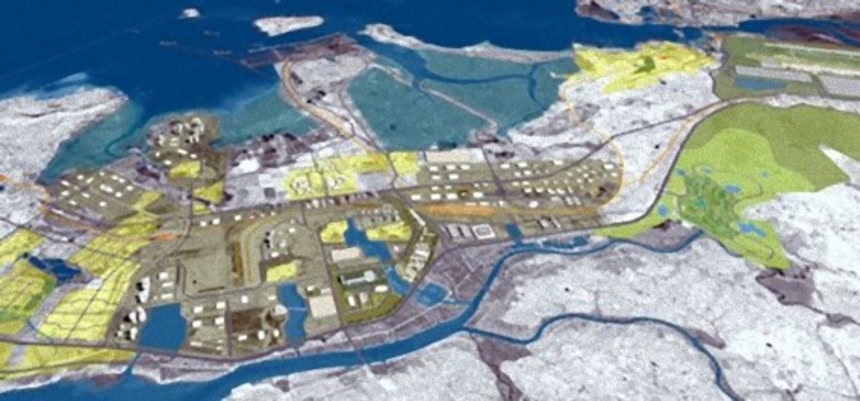 この画像を大きなサイズで見る韓国の仁川広域市は北朝鮮の国境から数マイルに位置する。人口はおよそ3百万人で、今では韓国で三番目に大きな都市となった。1994年、韓国政府は仁川の海岸沖を埋め立てて、世界でも最大級の情報産業都市を建設するという大胆な計画に取り掛かることを決めた。その費用はおよそ400-500億ドル(およそ4-5兆円)が見込まれていて、2020年頃に完成が予定されている。