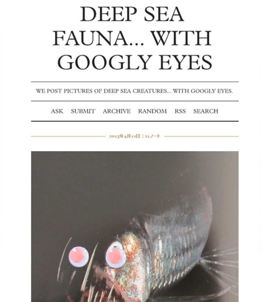 ということで、科学系のウェブサイトで見つけた深海魚などにギョロギョロ動く目玉をつけちゃった画像タンブラーが公開されていた。