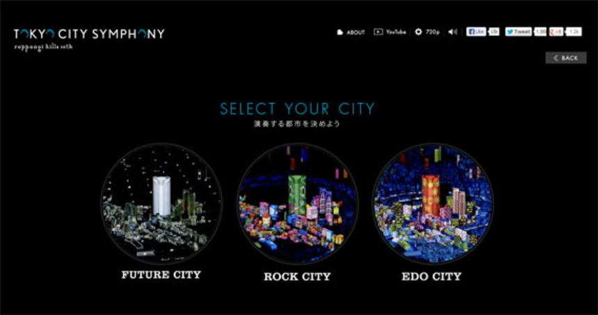 街を彩るマッピングのモチーフは「FUTURE CITY」「ROCK CITY」「EDO CITY」の3種類。プレイ中の参加者は、Web上に表示され、アイコンとして出現するぞ。