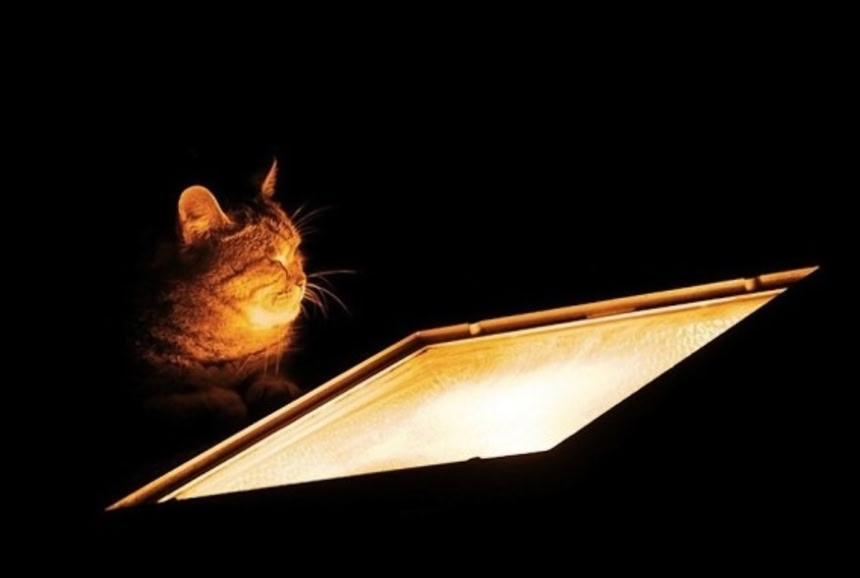 猫がライトアップされとる~!