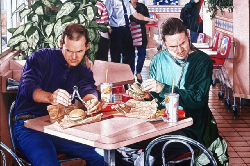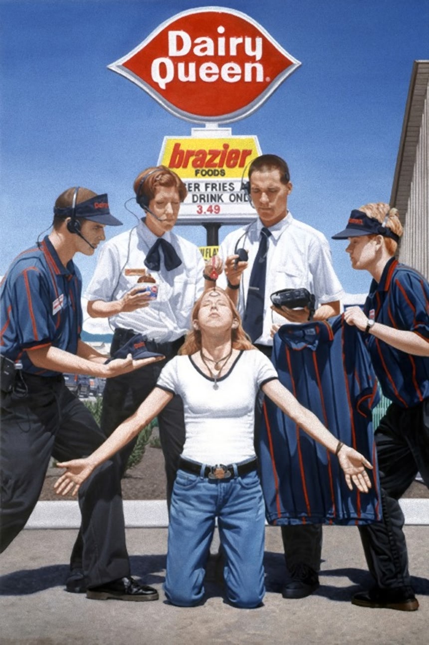 カナダ人アーティスト、クリス・ウッズは、西洋社会におけるファーストフードを宗教と位置付け、ファーストフードを崇拝し、その教えに従って正しい行いをしている人々をシニカルに描写したそうだ。