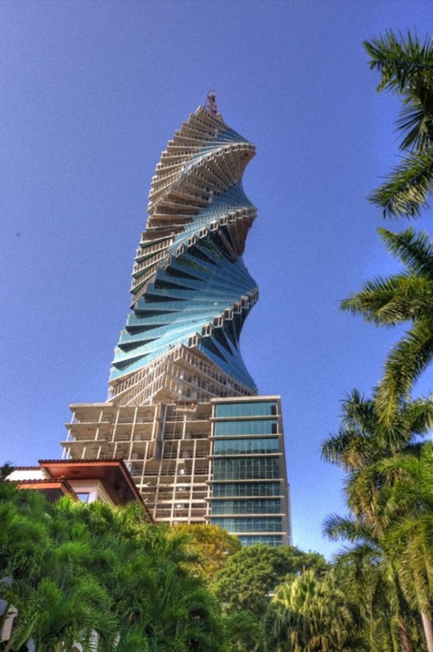 この画像を大きなサイズで見るコークスクリューのような近代的なこのビルは、パナマシティの金融街近くにある。高さ242メートル、52階建てで、360度回転している。