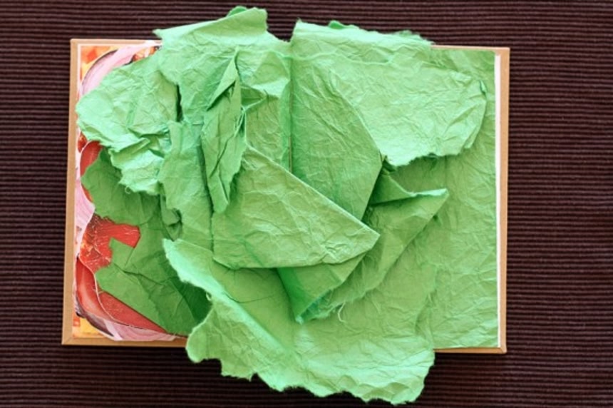 パンの模様が印刷された本を開くと、各ページにはそれぞれの具材が盛りだくさん。食材にあわせて紙質も変えてあるので、なんだとってもおいしそう。この本があれば、空腹時になんとなく乗り切れそうだ。