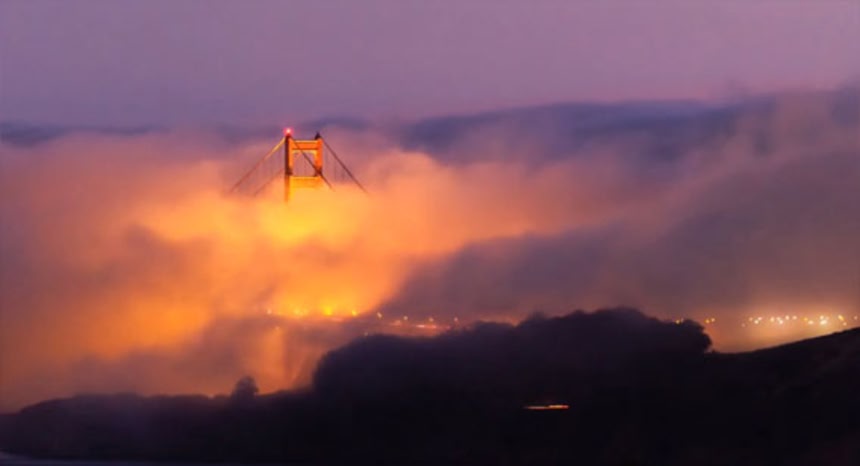 米カリフォルニア州サンフランシスコのベイエリアと、その象徴ともいえるゴールデンゲートブリッジに、まるで滝のように流れ込む霧の様子を撮影したタイムラプス映像。まるで漂流者の気分になったかのようだ。なんかこの霧になら飲み込まれてみたい。