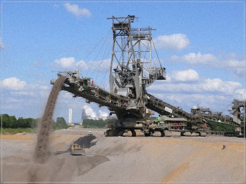 この重機はスタッカ・リクレーマというもので、岸壁からベルトコンベヤで運ばれてきた石炭を貯炭ヤードに山積みするスタッカと貯炭ヤードに山積みされた石炭を掻き取り、払出用のベルトコンベヤに載せるリクレーマの両方がついている兼用機なのだそうだ。コメント欄によると、全長225m/全高96m、総重量1万4200tの人類史上最大の自走機械だという。それにしてもでかい。
