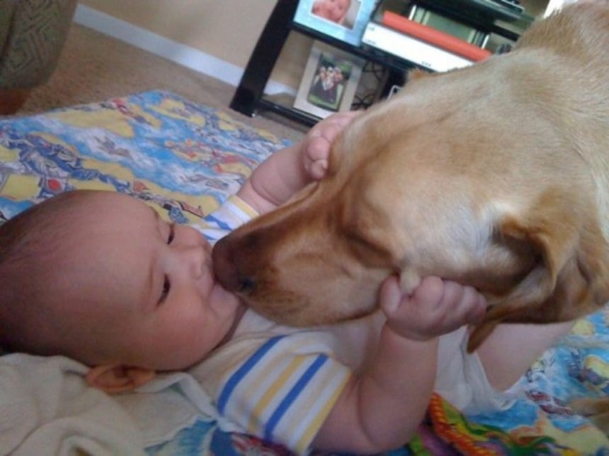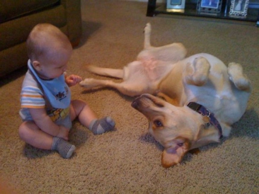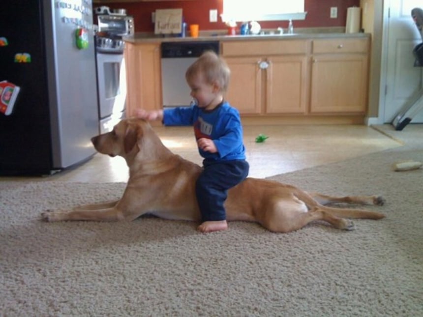 オギャーと産声を上げ、自宅に連れ帰ったその日から、常に息子のそばにいてくれたのは、他でもない家族の一員である愛犬だった。時には親のように、時には兄弟のように、その2年半を母親が撮影した写真が、海外投稿サイトredditに公開されていた。
