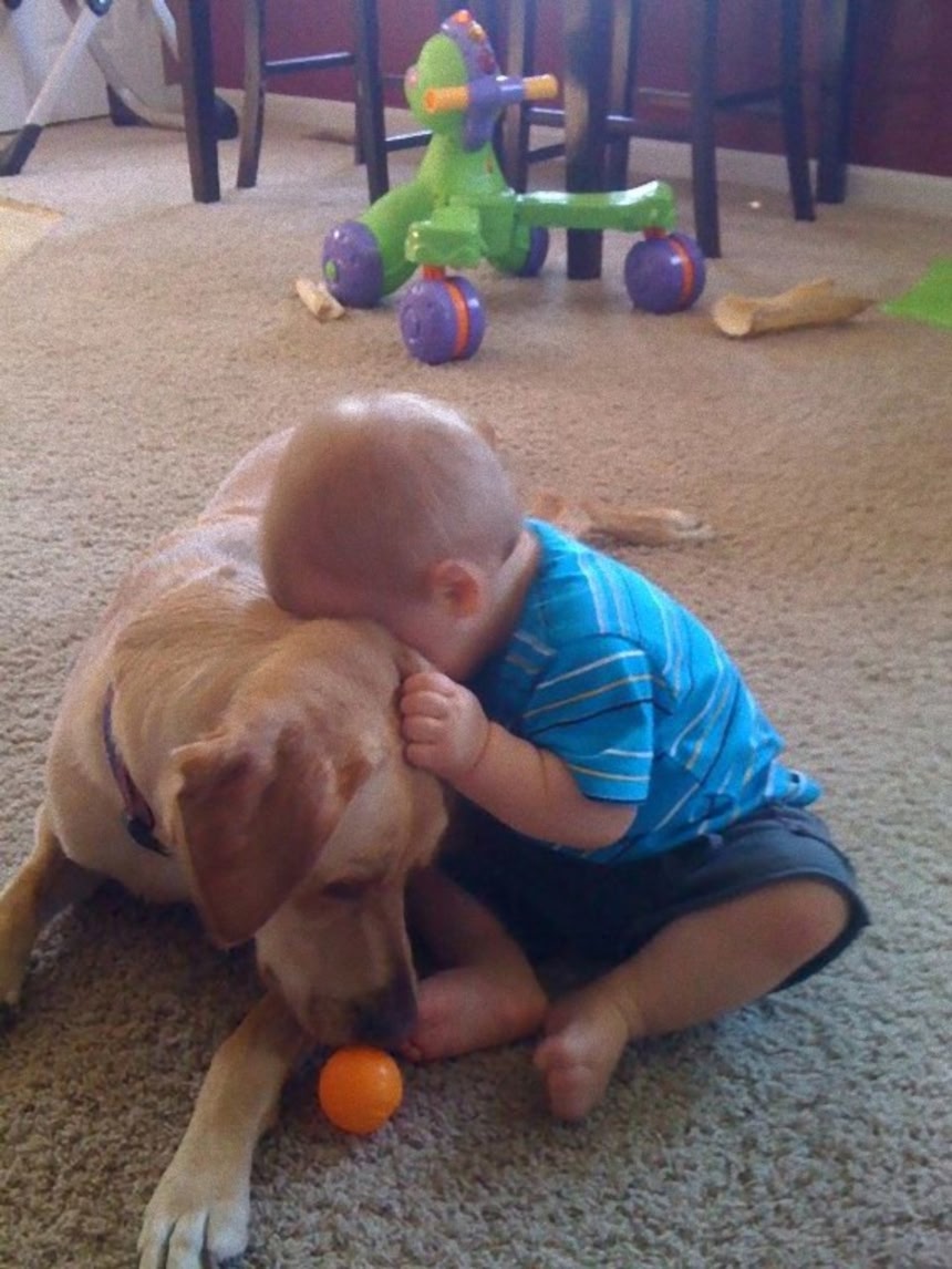 坊やもワンコも信頼しあっている感じが画像から伝わってきて、ジーンとなりました。もし自分に子供ができたら、こうやって小さい頃から動物に触れさせたいな( ´ ▽ ` )♪