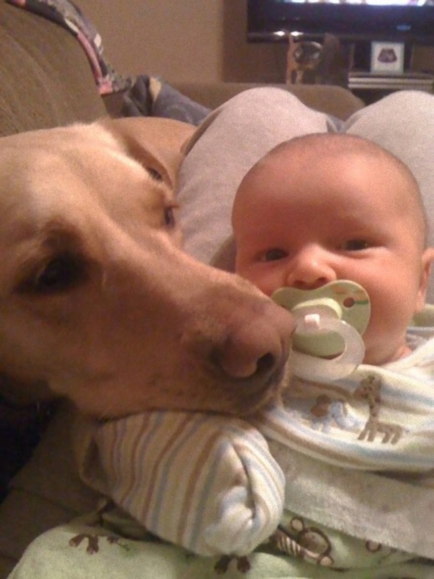 子供が産まれてすぐに一緒に寝てたし吐いたミルクをペロペロなめたり、犬ガムを歯がために共有し順番に噛んだりしてました。