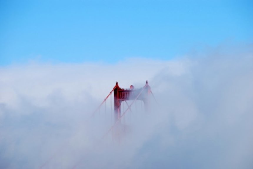 この画像を大きなサイズで見る霧に覆われるゴールデンゲートブリッジ