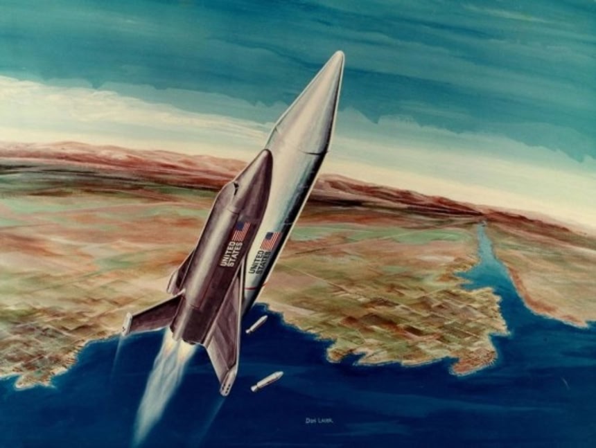 この画像を大きなサイズで見る”宇宙から帰還する宇宙船を水平着陸させる”という発想は昔からあり、スペースシャトルが初飛行する1982年より数十年も前から考えられていた。その提案は1954年、ちょうど第二次世界大戦から8年後にNACA(米航空諮問委員会。NASAの前身。)に提出されていた。最終的にはその企画が後のX-15航空機になるのだが、当時は次世代の宇宙輸送システムの検討が極秘プロジェクトとして進行していた。
