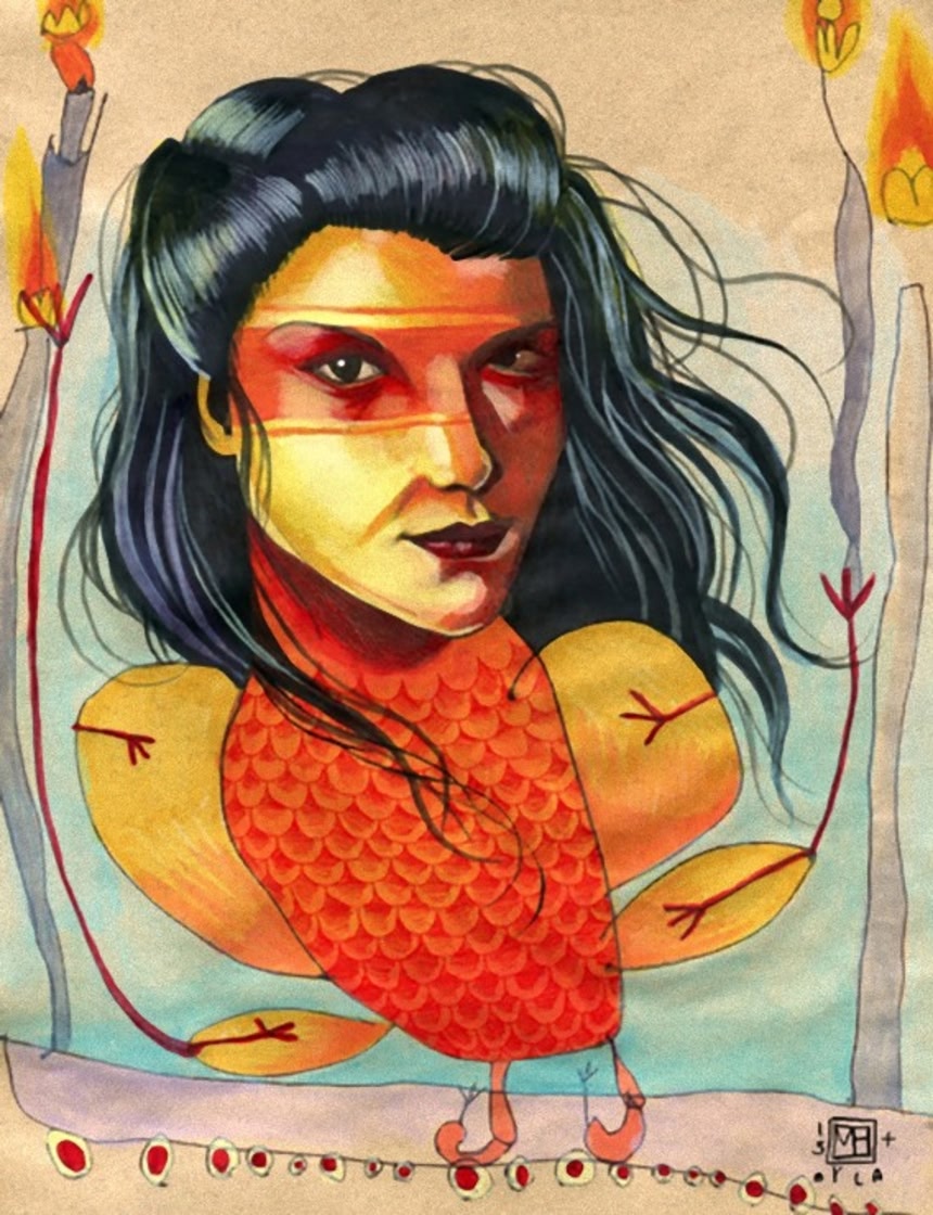 この画像を大きなサイズで見るプロのイラストレーター、ミカ・アンジェラ・ヘンドリクスは、自らがまず顔の部分を描き、そのあとは4歳の娘に任せている。この製作スタイルが思いがけない斬新な作品へと進化する。