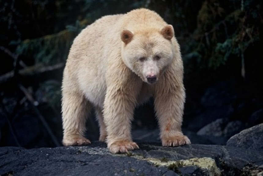 インディアンのツィムシアン族は、このクマを神聖なものとして考え、狩をしたり、毛皮目当ての密猟者にクマの居場所をおしえたりすることは決してしなかった。しかし、現在では数が減り、1000頭もいない。捕まったのはたったの一匹だけで、クローバーと名づけられたこのクマは現在、ブリティッシュコロンビア野生生物公園で見られるという。