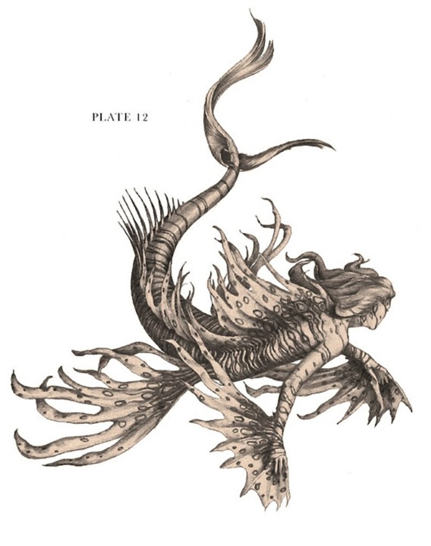 やはり、神話の生物を解剖学的に考える人自分だけじゃなかったのですね。人魚については、人間として正面を向くと、魚の○門が丸見えだなー、と思っていました。あと、ケンタウロスに至っては、人の胴体と、馬の胴体があるので、人間として食物をとるのか、それとも…などと、色々な妄想は止まらなくなります。いつか、天狗やカッパの解剖図も見てみたいものです。