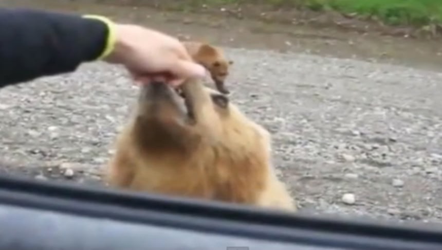 この画像を大きなサイズで見るロシアでは、ドライバーに餌をおねだりするクマたちがいるそうだ。路肩に止めたトラックの運転手に餌をおねだりしていたクマ、撮影者はそのクマに「餌をやるからおいで」と誘ってみたところ、こっちに向かってやってきた。